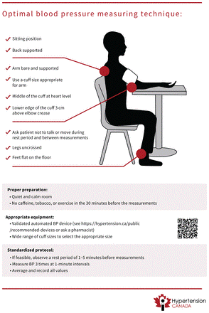 When out-of-office BP measurements are not feasible owing to lack of accessibility, affordability, or adequate training for patients or caregivers, the diagnosis of hypertension can be confirmed with repeat office BP measurement using the standardized technique. Although reliance on single-visit office BP measurements to diagnose hypertension reduces specificity relative to ABPM,35 it may need to be considered in certain circumstances, such as for patients with infrequent office visits who are unable or unwilling to perform out-of-office measurements.